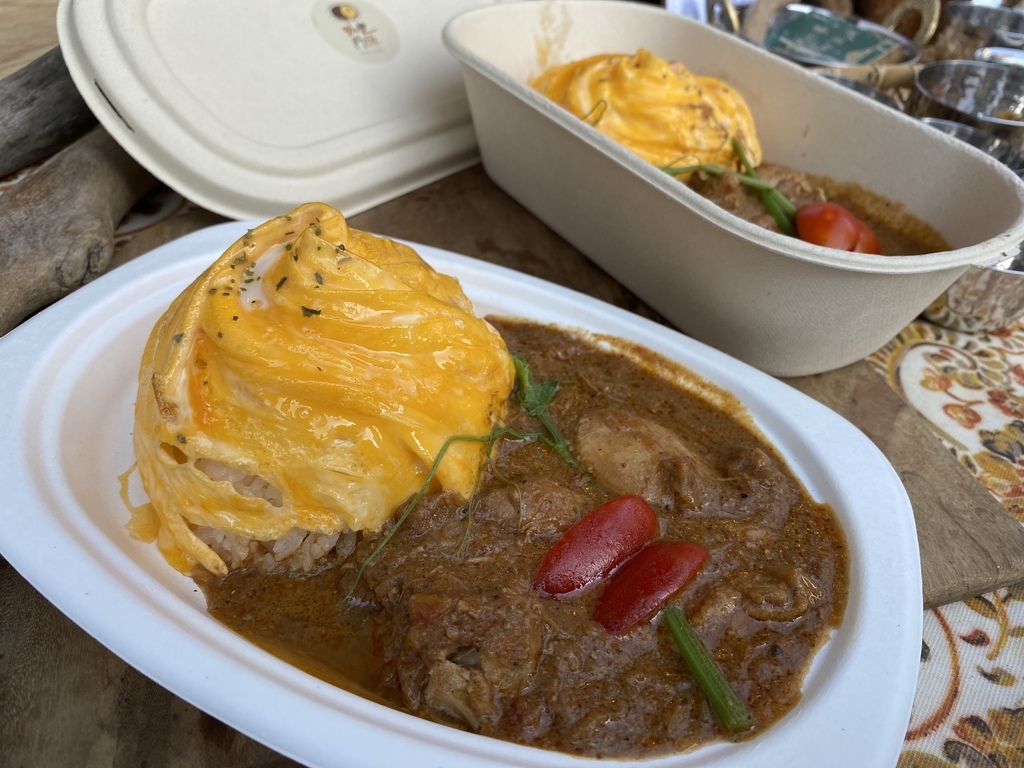 路上看到超多美眉迎面走來人手一盤咖哩 看起來超厲害 怎麼能把蛋包飯做這麼美拉![]()