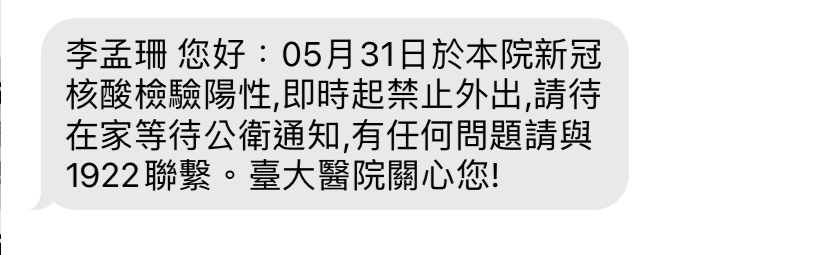收到禁止外出的簡訊和電子版本的隔離通知書
