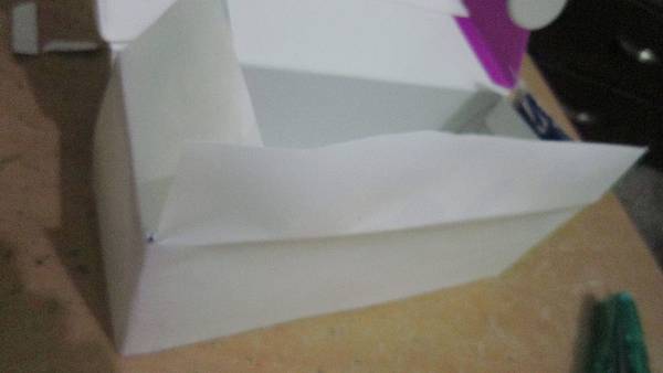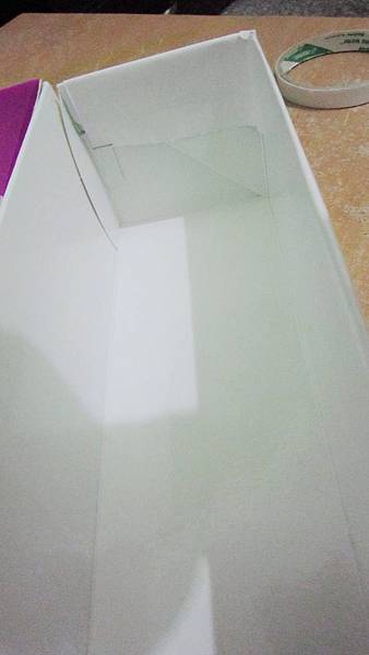 3.裁好的紙用雙面膠黏上盒子 (長可以留多一點 因為要包進盒子裡)