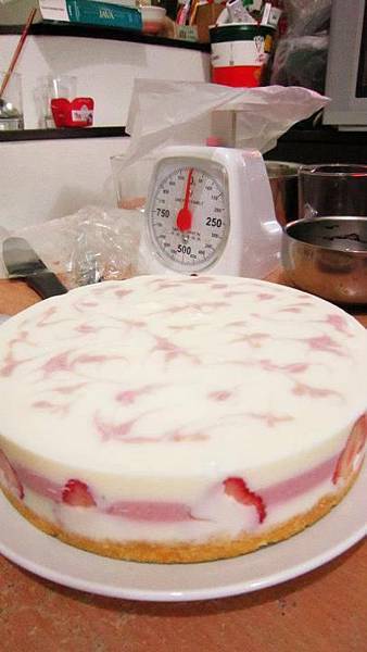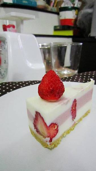 ▲是切一半的草莓 切面的位置是貼著模具並且朝外
