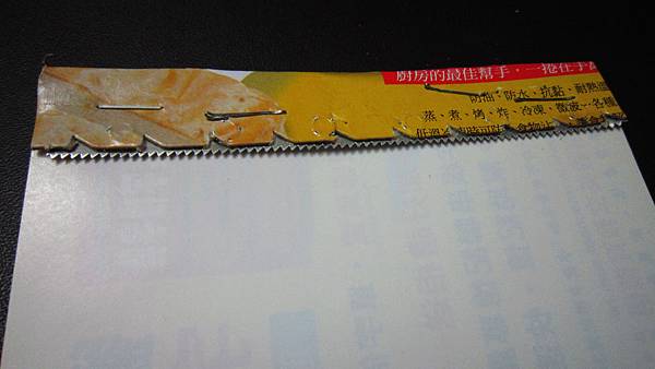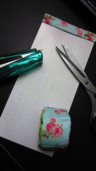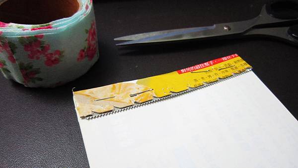 4.把那段鋸齒的紙 將廢紙釘書機定起來的部分 包起來