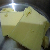 2. 50 g 無鹽奶油 隔水加熱溶解 (什麼是隔水加熱?請點這裡)