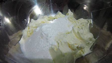 1. 370g馬斯卡波乳酪(mascapone) 慢速打到沒有顆粒呈現柔順的狀態