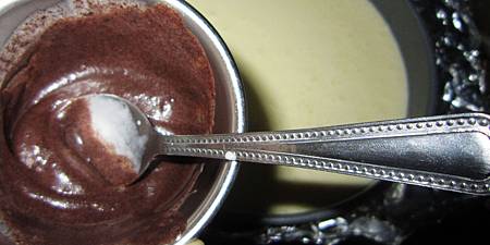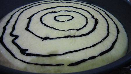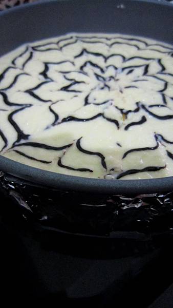 可以取一點乳酪蛋糕麵糊 加入一大匙可可粉 攪拌均勻